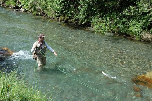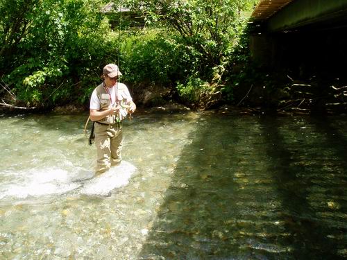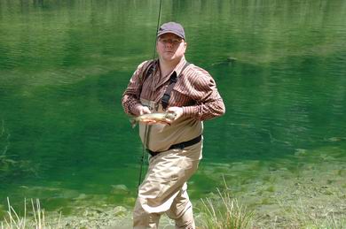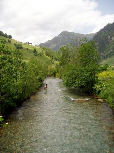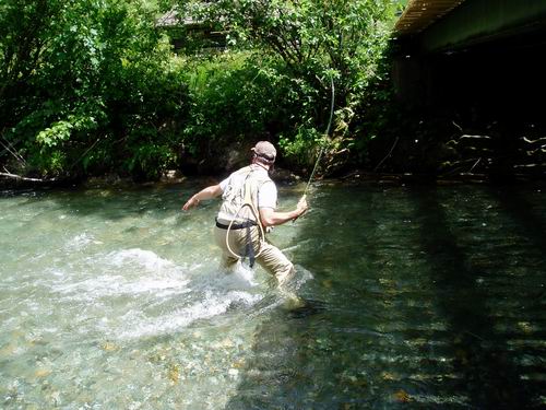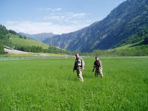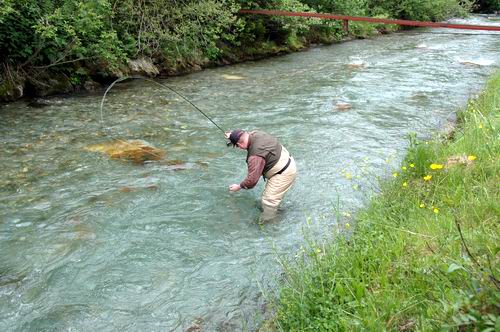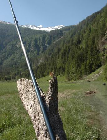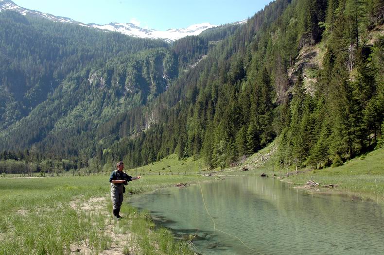 Was ist hier eigentlich los - werden wir langsam zu erfahrenen Fliegenfischern ? Christian im Drill zwischen Talschluss und Hüttschlag |