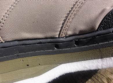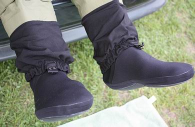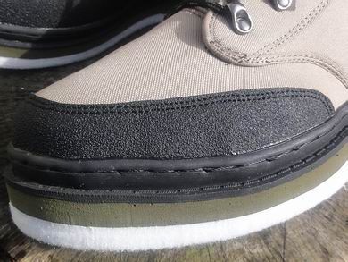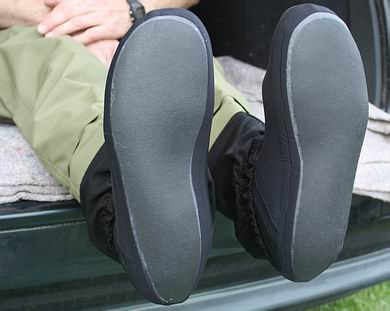 | Der Schaft der Adventure Watschuhe reicht ca. 5 cm bis über die Knöchel hinauf. Die dicken Filzsohlen bieten guten Halt, ein Nachrüsten mit handelsüblichen "Schraub-Spikes" ist bei Bedarf möglich. LOOP sollte erwägen, den Adventure Watschuh wahlweise auch mit Gummisohle anzubieten (=> Aqua Stealth / Vibram etc.). |