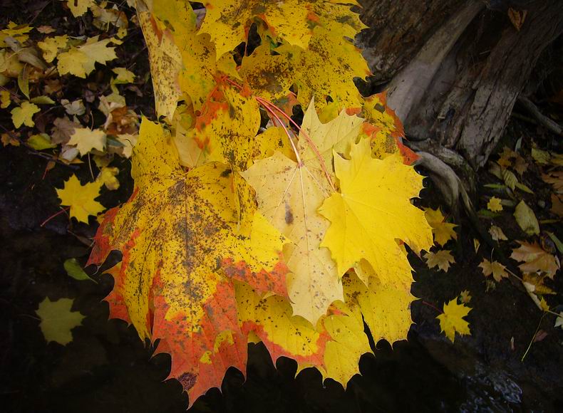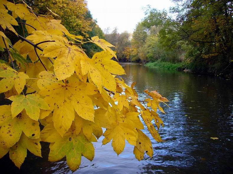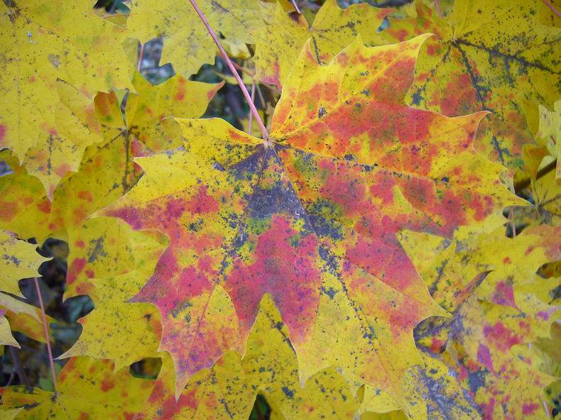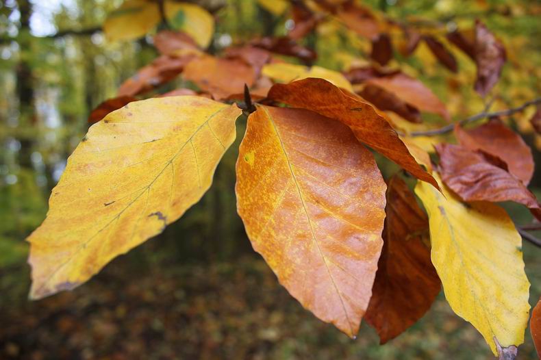 gelb, später leuchtend gelb, orange, rot bis rostbraun - leuchten