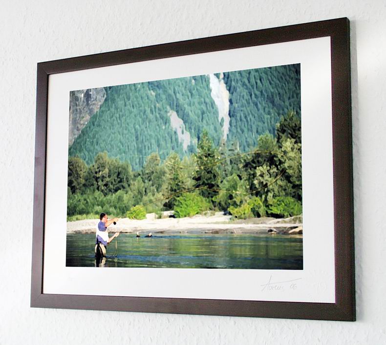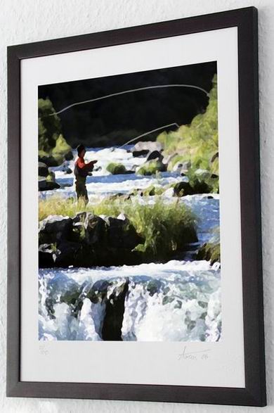 Bei der Auswahl der aktuellen Rahmenkollektion wählt édition79 stets eine geschmackvolle Kombination aus gegenwärtigen Trends und zeitlosem Chic. Die dezenten und neutralen Farben ermöglichen einen größtmöglichen Einsatz sowohl im Wohn- als auch Geschäftsbereich. Gleichzeitig unterstreichen sie die hohe Wertigkeit und den guten Geschmack des Besitzers (Zusammenstellung nach Käuferwünschen möglich). Die für die Rahmen eingesetzten Hölzer stammen größtenteils aus europäischen und asiatischen Wäldern und werden in Süddeutschland zu Leisten verarbeitet. In aufwendiger Handarbeit und unter Zuhilfenahme modernster Maschinen entstehen daraus schließlich kunstvolle Bilderrahmen. Der Preis für das gängige Format 30 x 40 cm beträgt bei einer komplett gerahmten Edition (weltweit nur 99 Exemplare) nur 129,- Euro. Dies bietet jedermann die Möglichkeit, sowohl seine Wohnung als seine Arbeitsräume ästhetisch anspruchsvoll und repräsentativ in visueller Anlehnung an seine "Lebenseinstellung Fliegenfischen" zu dekorieren. Denn nichts schätzen besonders Stadtmenschen so sehr, um ihrem Alltag - wenn auch nur für Momente - zu entkommen, wie Einsamkeit und unberührte Natur. |