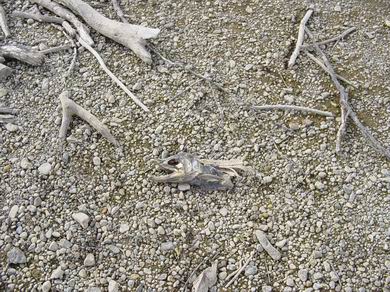| ... und sind ganz schön platt, als wir nach weiteren zwei Stunden unser Boot beladen haben, um los zu fahren. Aber es ist zu wenig Wasser im Bach, um zu floaten, also müssen wir ziehen!!! Dies ist oft das Problem, wenn man zu weit im Oberlauf eines Flusses einsetzt oder wenn einfach zu wenig Wasser im Bach ist, weil es zu wenig geregnet hat. Wir können die ersten Kings sehen und erfreuen uns an Ihren Anblick. Sie sind zwar schon knallrot aber insgesamt noch in recht guter Verfassung. Diese Giganten von zwanzig Pfund und mehr kämpfen sich durch knöchelhohes Wasser, um sich zu vermehren und ihrem Schicksal entgegen zu schwimmen: dem Tod. | ![]() |