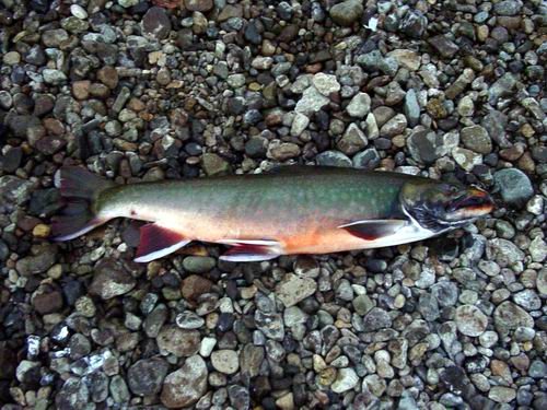 | Der Fluss ist hier sehr gut zu begehen und wir haben einige hunderte Meter super Fischwasser zu befischen. Nachdem wir unseren Hauspool ausgefischt haben laufen wir stromabwärts und glauben unseren Augen nicht zu trauen. Der Bach ist bumsvoll mit Dollies und Arctic Charrs, die wir sogleich versuchen zu überlisten. Was aber gar nicht so leicht ist! Nun müssen wir beginnen nach jedem fünften Wurf den Köder zu wechseln, da die Jungs doch recht schnell merken, daß wir ihnen an die Wäsche wollen. Das Schönste ist, immer als Erster in so eine Schule zu werfen. Alle Fische versuchen sofort sich den Köder zu schnappen und sind unglaublich kampfstark. Nach dem zweiten oder dritten Drill haben sie es dann schon gespannt und man muss Köder und Strategie wechseln, oder geht einfach ein paar Meter weiter. Ich habe selten so einen Fischreichtum in Alaska angetroffen wie an diesem Ort. | ![]() |