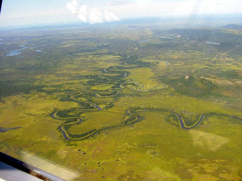 Was man vergessen hatte uns zu sagen, war, dass wir nicht direkt auf unserem Fluss landen können, sondern auf einem kleinen See der ca. eine viertel Meile weg vom Fluss sein sollte. Wie sich nach einer ersten Begehung herausstellt, ist dies die längste viertel Meile auf der Welt!!! Wir verbringen fünf lange Stunden damit unsere Sachen zum Fluss zu tragen... |