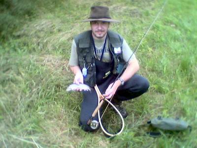 Zahlreiche Bachforellen und Regenbogner zwischen 25cm und 38 cm haben so mal kurzzeitig „Landluft“ geschnuppert und wurden schonend wieder zurückgesetzt. Die Verwendung von Schonhaken, bzw. angedrücktem Widerhaken ist Pflicht und erleichtert somit natürlich auch das „nasse“ Abhaken. |