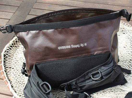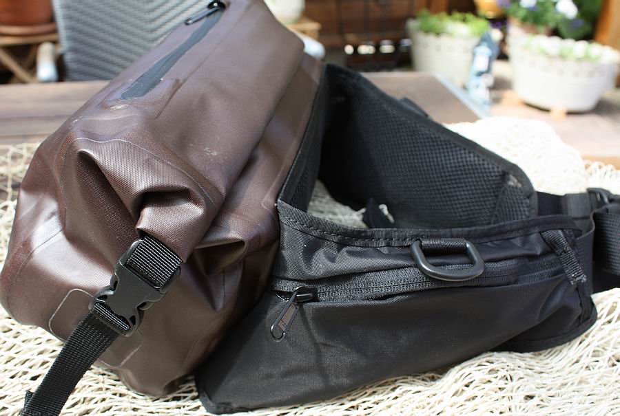 Unser Testmodell zeigte sich top verarbeitet, ohne viel Schnickschack und mit den perfekten Maßen für die leichte Watfischerei - nicht zu klein und nicht zu groß. Alle Gurte, Einstellmöglichkeiten, Funktionen und die Abmessungen des Stauraumes lassen keine Wünsche offen. Auf einen optionalen Nackengurt, wie ihn manche Hüfttaschen aufweisen, wurde bei der Aqua Handles verzichtet, ebenso wie auf eine Innenfach-Unterteilung. Aufgrund der einen oder anderen früher gemachten negativen Erfahrung mit „wasserdichten“ Hüfttaschen manch anderer Hersteller, bei denen die Reißverschlüsse oft nur „spritzwassergeschützt“ waren, wollten wir im Test natürlich genau wissen, wie wasserdicht die Vision Aqua Handles Hüfttasche wirklich ist. Also packten wir einen Ziegelstein (passt genau rein...) in die Tasche, verschlossen sie sorgfältig (mindestens drei mal eingerollt und nach dem Einklicken schön straff verzurrt) und versenkten sie für einen Tag in der Regenwassertonne! Das Ergebnis war sehr erfreulich: weder war der Innenraum des Hauptfaches nass geworden, noch hatte das Außenmaterial Wasser aufgenommen. Wir können also aus erster Hand bestätigen, dass diese Tasche nicht zuletzt durch ihr Roll-Top-System wirklich 100% wasserdicht ist (wenn man es richtig bedient)! |