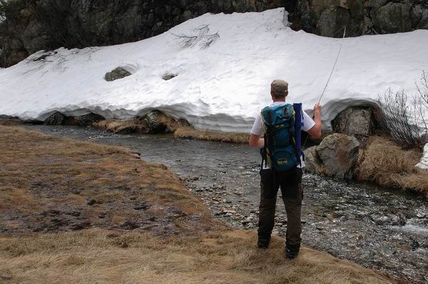 ![]() Matthias beim Anwerfen eines Fisches im Triftwasser (AB) |
