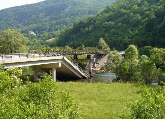 In Martin Brod. Rechts: Am Zusammenfluss Unac - Una. Unten: Unabrücke - alt und neu... |