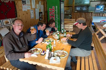 Gesagt, getan: am nächsten Morgen war Ado pünktlich zur Stelle und drängte uns durch das üppige Frühstück: "On y va, on y va! Fishing Guys, hopp, hopp!" "Was soll der Stress?" fragte sich jeder von uns, doch wir sollten später sehen, was es heißt, zu spät an den Ribnik zu kommen. |