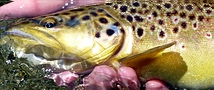 Der Bestand an Äschen in der Ribnik ist gewaltig. Doch so richtig auf die Nymphen wollten sie nicht reagieren. Ab und zu gelang zwar ein Fang, aber bei der Anzahl der gespotteten Fische im Wasser war das schon fast frustrierend. Ado meinte, die Äschen wären nicht in Beißlaune (ich vermute aus lauter Höflichkeit) und riet, mit dem Streamer unter die Büsche zu werfen. Umgehend fingen wir sehr schöne und große Bachforellen. |