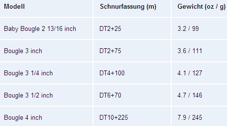 (eigene Messungen): Farbe: Handpoliertes Alu-Finish im Perlsilber-Farbton Gewichte: Rolle: 151 Gramm Spule alleine: 33 Gramm Rollendurchmesser: 74 (82) mm Rollenbreite (ohne/mit Kurbel): 36 (54) mm Spuleninnenbreite: 23,5 mm max. Spulentiefe (nutzbar): 26 (29) mm Spulenkerndurchmesser: 16,5 mm Schnuraufnahme bei einer ganzen Umdrehung mit voller Spule: 21 cm Schnurfassung: DT4 +100m 20lb Lieferumfang: Karton, Lederetui (mit Schaffell gefüttertes Weichleder Etui), Boglé Handbuch mit Warrenty, Umbau- und Pflegeanweisungen (in Englisch), Garantiekarte Garantie: Lifetime Warrenty für den Erstbesitzer auf Material- und Herstellungsfehler, nach erfolgter Registrierung ab Kauf innerhalb 60 Tagen. Seriennummer: Ja, auf Rollenfuß graviert Preise (UVP, Stand Sept. 2015): Rolle: 529,00 €, E-Spule: 109,00 € |