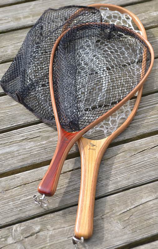 Brodin Kescher aus den U.S.A. werden in fünf verschiedenen Serien angeboten. Bei der Streambase und Pro Kescherserie sind die Kescher mit einem Soft-Nylon Schonnetz ausgestattet und bei den Phantom, Ghost und Platinum Kescherserien gibt es ein Netz aus einem speziellen thermoplastischen Kunststoff. Ich habe einen Kescher aus der Pro Serie - den Cuthrout Kescher - und aus der Ghost Serie - den Tailwater Kescher - getestet und unabhängig von Größe und Form miteinander verglichen. |