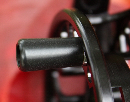 Die Kurbel aus Kunststoff ist leichtgängig, griffig und spielfrei, mit einem nach Außen zunehmenden Durchmesser, der einem Abrutschen der Finger entgegenwirkt. Ihr gegenüber sitzt ein Kontergewicht als Unterstützung für einen ruhigen, schlagfreien Spulenlauf. Die Spule läuft sauber, rund und auch bei hohen Abzugsdrehzahlen (fast) 100% schlagfrei. Jegliches Spulen-Spiel, Kippeln etc. ist nicht vorhanden, alle Ecken und Kanten von Rolle und Spule wurden sorgfältig abgerundet. Im Gehäuse der Brookie befindet sich kein übliches, einstellbares Bremssystem, sondern eine Vor- und Rücklauf- Klickerhemmung, deren Widerstand sich am Kern der Spulenachse ganz nach Bedarf voreinstellen lässt. Der dazu benötigte kleine Sechskantschlüssel liegt der Rolle bei. Der leichte Einholwiderstand verhindert ebenfalls wirkungsvoll ein unerwünschtes "Mitlaufen" der Spule beim Werfen. Im Betrieb lässt die Brookie in beiden Laufrichtungen einen dezenten, metallischen Klicker hören. |