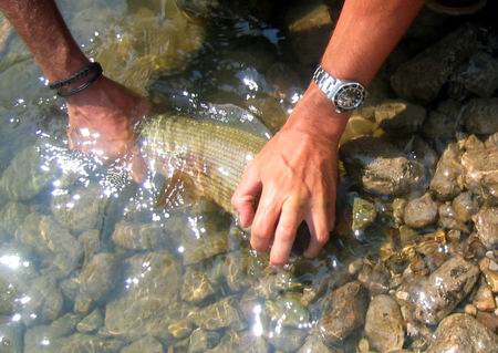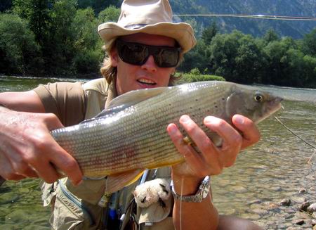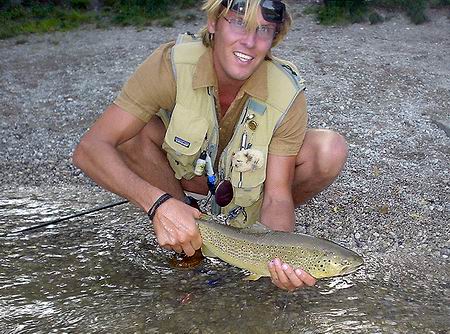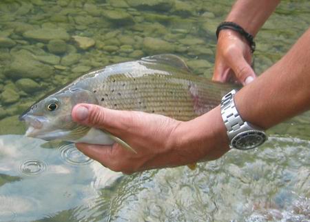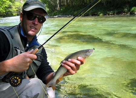 hat er mal eine Äsche gefangen, die er uns stolz zeigt.