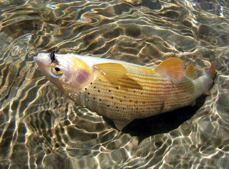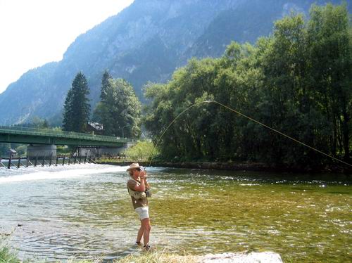 Als erfolgreichste Methode hat sich eine buschige Trockenfliege herausgestellt, die gegen die Strömung eingestrippt wird. Das ist zwar nicht so elegant, aber sehr fängig. Die 3,5 km lange Stecke ist hat schnellfließende Abschnitte und ruhigere, die sich ausgezeichnet zum Nymphenfischen eignen. Auch für Anfänger ist die Ischler Traun geeignet. |