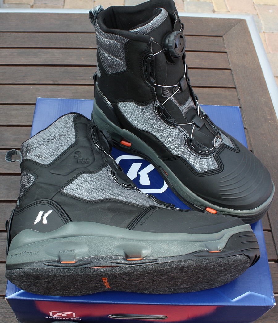Besprechung: Fliegenfischer-Watbekleidung Korkers DarkHorse Watschuhe mit Wechselsohlen |
