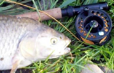 Döbel, Karpfen, Bach- und Regenbogen- forellen mit der Fliege gefangen