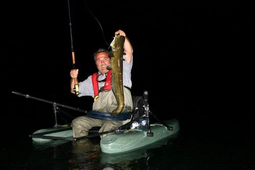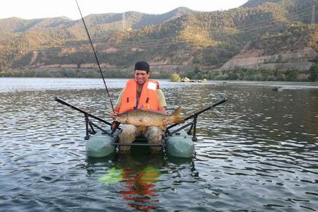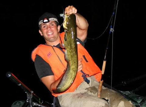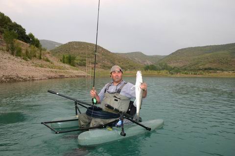 Heute beschloß ich den ganzen Tag mit der Fliegenrute auf Waller zu fischen. Nach dem ich meine Sachen gepackt hatte, machte ich mich auf zum Zwischenstau. Dort angekommen um ca. 15 Uhr fischte ich dann bis 19:30 Uhr ohne einen einzigen Biss! Ich hatte die Schnauze voll, paddelte Richtung Ufer und wollte aufhören. Plötzlich bekam ich meinen ersten Biss. Leider ging er verloren. Da dachte ich mir, ich kann jetzt nicht aufhören sollten sie jetzt zum beißen beginnen. So drehte ich noch einige Runden, und prompt hatte ich zwei schöne Zander gefangen, wobei der eine 80 cm hatte! Ein echt schöner Fisch! Die Mühen des Tages hatten sich also gelohnt! Und so machte ich dann um 22 Uhr Schluss. Donnerstag 14 Juli: