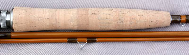 Teilung und Maße: Dreiteilige Fliegenrute, Länge 6'9" (zusammengesteckt und nachgemessen 205 cm), drei nahezu gleichlange Teile a. 71 cm. Das Gewicht der Rute beträgt leichte 80 Gramm. Blankdurchmesser über dem Griff: 7,5 mm, Blankdurchmesser an der Rutenspitze: 1,7 mm, Länge Rutenrohr: 79 cm, Gewicht Rutenrohr: 604 Gramm. Ausstattung: Glanzlackierter, dunkel-bambusfarbener ("Golden Caramel") Blank aus leichter Hohlglasfaser. Die Verbindungen der Einzelteile wurden als exakt passende Überschubverbindungen ausgeführt, die oberen Enden der Ruteneinzelteile wurden gegen das Eindringen von Schmutz und Wasser abgedichtet. Kleine Punktmarkierungen auf den einzelnen Rutenteilen erleichtern das schnellere Ausrichten beim Zusammenstecken der Rute. |