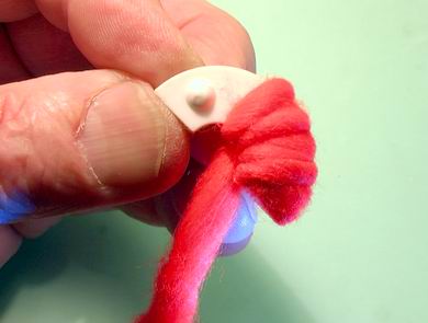 gebracht, die mit runden geschlitzten Pappscheiben die Bommel für