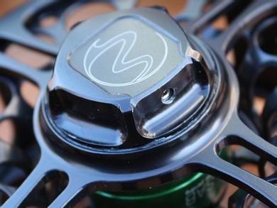 Das nächste Highlight stellt das verkapselte Hochleistungs-Bremssystem dar, dem Schmutz und Sand etc. nichts anhaben kann, untergebracht im Hauptachsensystem der Rollen, in einem dunkelgrünen (Blickfang-)Zylinder. Das gekapselte SAB-Kohlefaserbremssystem (completely sealed shock absorbance brake system) der Invictus sorgt durch ein zusätzliches Federsystem als "Shock Absorber" für ein ausgesprochen weiches Anlaufen der Bremse - ebenso wird es jedes Vor- oder Nachlaufen eliminiert. Das "rückfedernde" Bremsverhalten dieser Fliegenrollen ist ein Erlebnis, welches man nicht beschreiben kann, man muss es einmal in Aktion erlebt haben! Mit Hilfe des griffigen und gut bedienbaren Bremseinstellrades auf der Rollenrückseite lässt sich die starke Bremse in knapp einer Umdrehung rasch von der schon beachtlichen Grundhemmung bis "sehr kräftig" regulieren. Das Bremseinstellrad misst bei beiden Rollenmodellen 39 mm im Durchmesser und wird beim Bremskraft verstärken zwischen Mini- und Maximum rd. 1 mm im Gehäuse versenkt. |