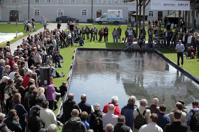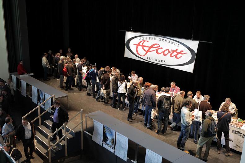 Rund 90 Aussteller aus 20 verschiedenen Nationen stellten ihre Produkte und Dienstleitungen aus und informierten über Neuerungen und Bewährtes. Insgesamt zeigten 30 Fliegenbinder den vielen Besuchern ihre Techniken und Methoden beim Fliegenbinden, gaben Tipps und Tricks an die Interessierten weiter. 12 international bekannte Werfer aus 8 Nationen gaben mit ihren Wurfdemonstrationen den Besuchern eine Kostprobe ihres Könnens und sorgten für eine tolle Unterhaltung. Casting Coordinator Juergen Friesenhahn belebte den Wurfpool mit seiner begeisternden Art, Moderation und Übersetzung der einzelnen Demos. Auch die beiden Casting Kliniken (Einhand mit Roman Moser und Zweihand mit Gary Scott) wurden rege besucht und gerne angenommen. Ein willkommene Ergänzung war das Angebot der FFF mit ihren 15-minütigen Trouble-Shooting Einheiten, um den viele wissensdurstigen Fliegenfischern Tipps und Unterstützung beim Werfen auch vor Ort zu geben. Die einzelnen Fachvorträge waren wieder mehr als gut besucht, sodass insgesamt rund 1250 Zuhörer die Säle füllten. Die Premiere des Films "Gaula - River of Silver & Gold" hat mit mehr als 330 Zuschauern die Erwartungen des Filmteams weit übertroffen. |