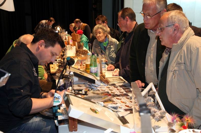 Hans Eiber hat wieder viele Neueinsteiger und interessierte Besucher über die EWF geführt und ihnen alle Infos rund ums Fliegenfischen, den Gerätschaften und den Wurftechniken vermittelt. Auch das Frauenprogramm, durchgeführt von Kate Blubaugh, erfreut sich jedes Jahr größerer Beliebtheit. Die Gewinner der Deutschen Meisterschaft im Fliegenbinden wurden wieder vom Magazin Fisch & Fliege auf der EWF verkündet, die anwesenden Gewinner erhielten vor Ort ihre Medaillen und Urkunden. |
