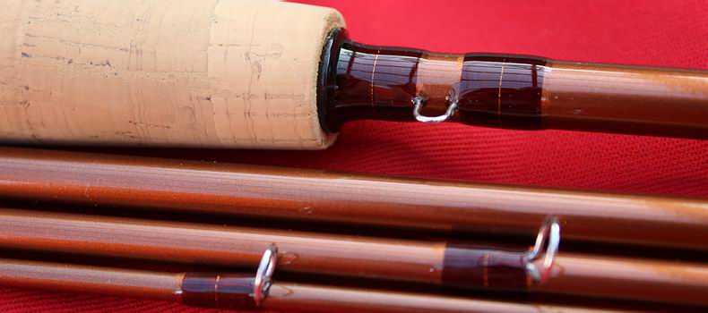 Teilung, Maße und Daten: Vierteilige Fliegenrute, Länge 9'0" (zusammengesteckt und nachgemessen 276 cm), vier nahezu gleichlange Teile a. 72,5 cm. Angegebene Schnurklasse: #5, angegebenes Schusskopf-Wurfgewicht: 11-13 Gramm / 170-200 grains. Das Gewicht der Rute beträgt 89 Gramm. Blankdurchmesser über dem Griff: 8,7 mm. Blankdurchmesser an der Rutenspitze: 1,6 mm. Länge Transportrohr: 80,5 cm, Gewicht Transportrohr (leer): 565 Gramm. Ausstattung: Geschliffener, lackierter Blank aus hochmodulierter Kohlefaser, Farbe Metallic-"Rust", gut passende Überschubverbindungen, mit kleinen weißen Punkt-Markierungen und Beschriftungen der Einzelteile zum schnelleren Ausrichten beim Zusammenstecken. Die Verbindungen greifen jeweils um 48 mm ineinander. Die Oberseiten der einzelnen Teile wurden gegen eindringenden Schmutz, Nässe etc. abgedichtet. Beringung: Handteil ohne Beringung, mit feststehender Fliegeneinhängeöse in Rollenflucht, Teil 2 mit zwei abgestuften, gunsmoke anodisierten Dreifußringen mit Hardloy Einsätzen, Teil 3 mit drei abgestuften Einstegringen, Spitzenteil mit vier Einstegringen und dem Spitzenring. Die Ringdurchmesser und Drahtstärken sind der Schnurklasse gut angepasst. Alle Einstegringe sind superhart verchromt. Ringbindungen in dunklem Weinrot und Halbtransparent. Dezente, kupferfarbene Zierwicklungen an allen Rutenteilen. Alle Bindungen wurden gründlich bis reichlich lackiert. |