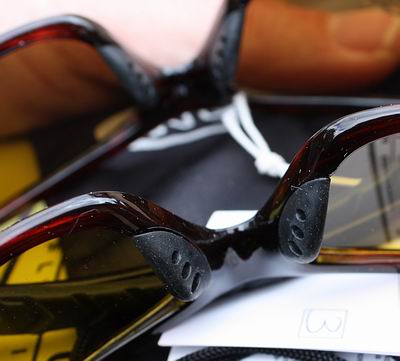 Die Brillengläser wurden mit einer schützenden Spezialschicht gegen Kratzer versehen, um harten Beanspruchungen stand zu halten. Der Rahmen ist halbtransparent dunkelbraun, die hinteren Bügelenden und die Nasenauflagen sind aus elastischem Material. Die X-Spider besitzt eine der Gesichtsform angepasste, gerundete Front und die Bügel gehen hinten etwas zusammen, um unter leichter Kopfspannung einen sicheren Halt bei sportlicher Betätigung zu ermöglichen. Die Lieferung erfolgt im Karton, inklusive einem Putztuch als Schutzhülle und einem Brillen/Schulterband. Verfügbar ist die X-Spider mit gelben (Kategorie 2) oder braunen (Kategorie 3) Gläsern. Der Preis beträgt 49,-- Euro. |