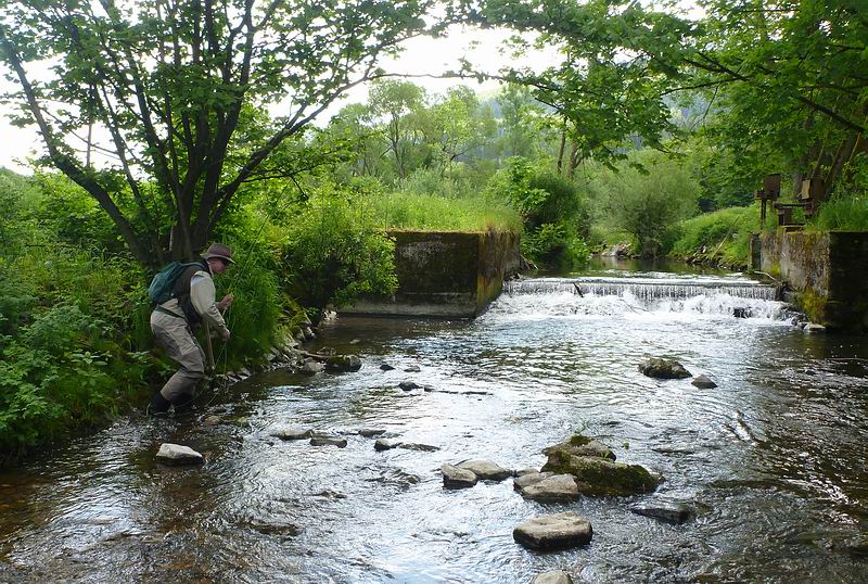| Das kleine Wehr in der Nähe der unteren Streckengrenze ist immer für einige schöne Fische gut... |