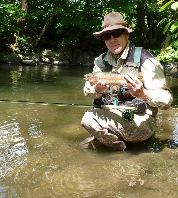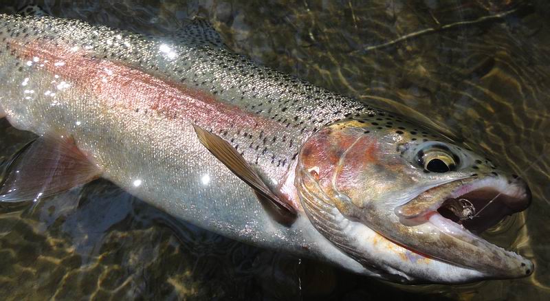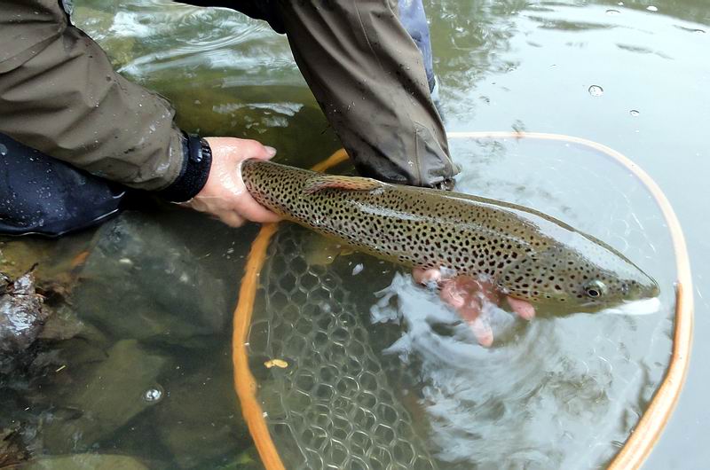 Diese Regenbogen- forelle stieg im schattigen Uferbereich auf meine Maifliege... |