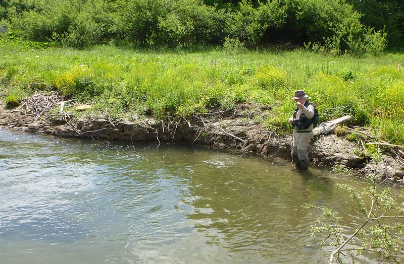 Die Fische reagieren sehr scheu und wer hier durchwatet wie ein „Ackergaul“, wird sich wundern, wie wenige der eigentlich überall zahlreichen Fische sich nur noch in Reichweite der Fliege befinden ... Der richtige