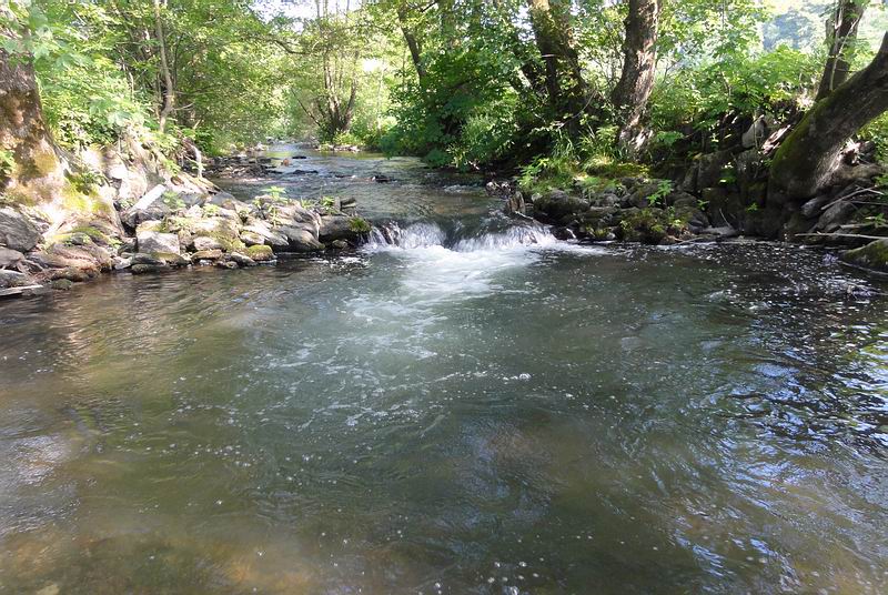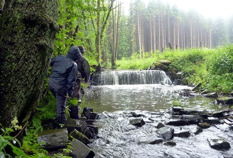 Unser Fazit: Ein Klasse-Revier für einen oder mehrere Tage und für die feinste Waldbachfischerei, verbunden mit viel Laufen, über umgestürzte Bäume steigen, vorsichtig schauen und fischen und einer ganz eigenen Romantik. Erholung pur und besonders schöne Fische, die geschickt erarbeitet werden wollen. Oben: Eine
