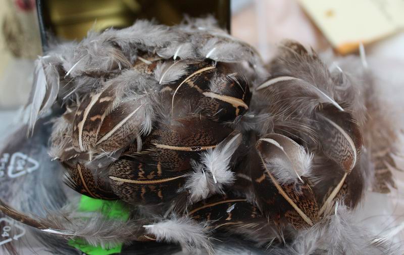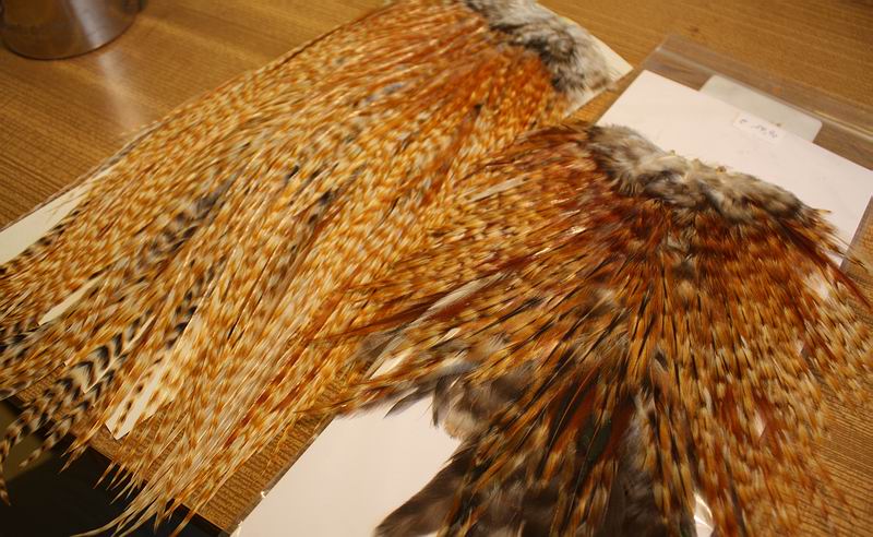 auch die anderen Federn des Fasans (oben ein kompletter Goldfasanbalg)