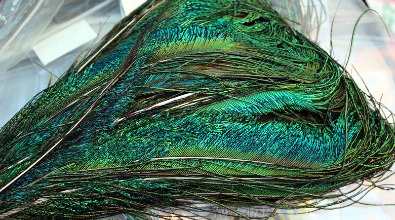 ein Klassiker: Schwanzfedern vom Pfau. Verwendet werden die Augenfedern,