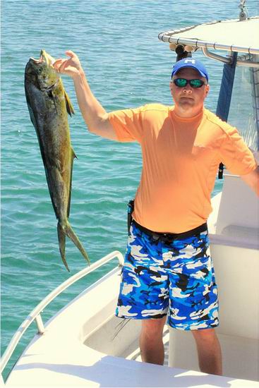 werden… Der Fang der Trophy-Dolphins blieb für diese Woche dann auch das Highlight, die weiteren Ausfahrten waren zwar weiterhin sehr fischreich, aber es blieb bei False Albacore, Jack Crevalle, unzähligen Blue Runner und Snook. Den Biss eines mittelgrossen Cobias konnten wir nicht umsetzen, Schwarzflossen- Thune machten sich extrem rar und an Tarponfischerei in Strandnähe war überhaupt nicht zu denken, da Riesenwellen die Surfer und Badegäste dort erfreuten. |  |