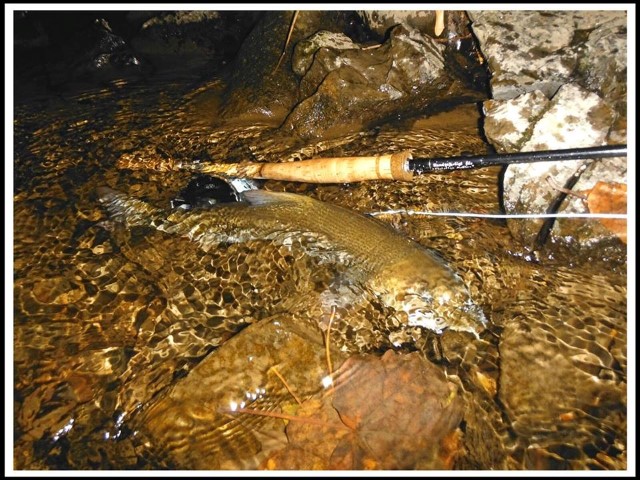 Man sieht auch den primitiven Streamer mit dem Ich ihn gefangen habe, einfach ein kleines Büschel Marabou eingebunden, fertig.