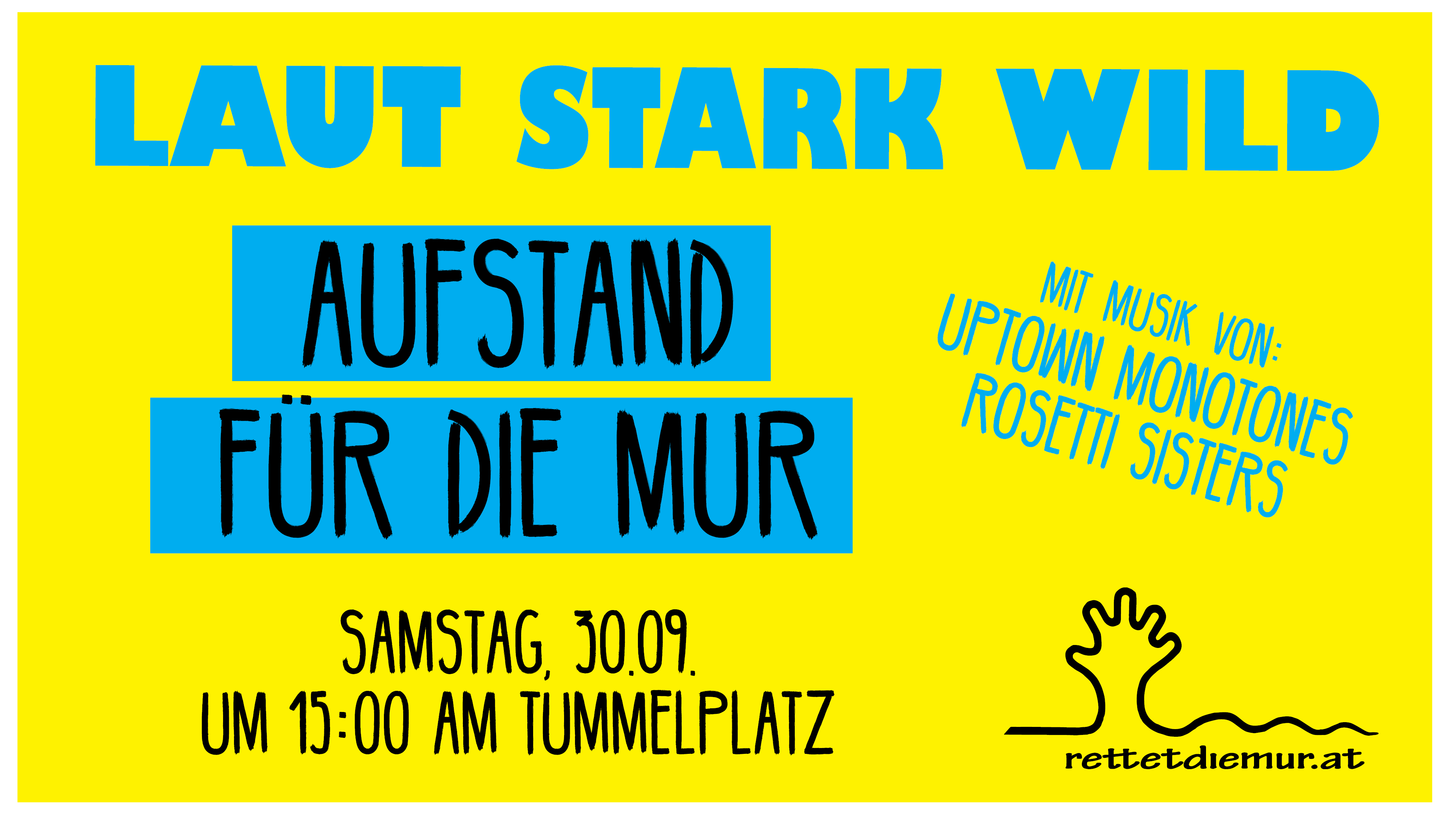 15:00 Hauptevent: LAUT-STARK-WILD - Demo und Konzert am Tummelplatz mit Musik von: Rosetti Sisters, Uptown Montones