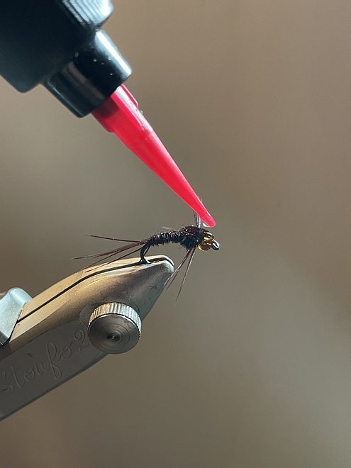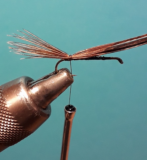 gut umwickeln, Whip finish knoten und Kopfzement auftragen. Fertig.