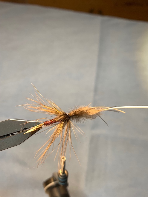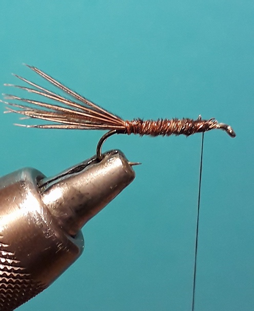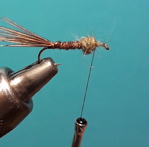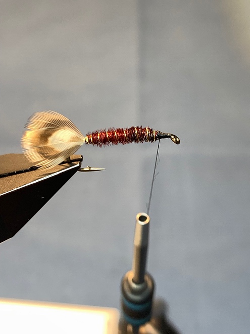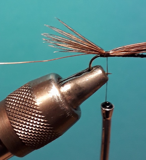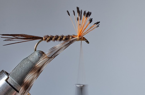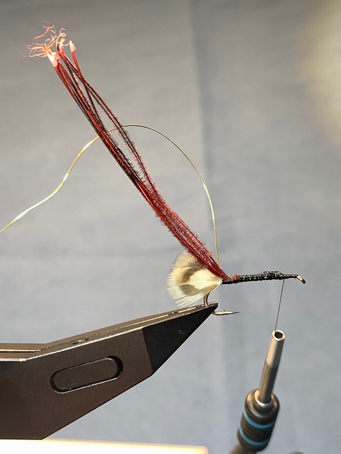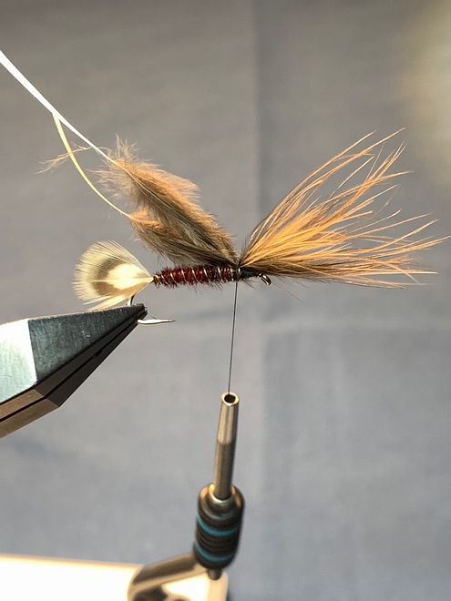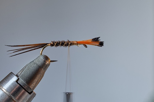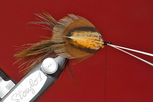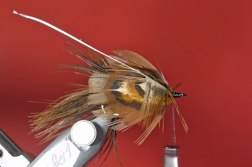 | Nochmals Fasanenfibern einbinden, wie auf dem
