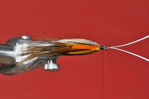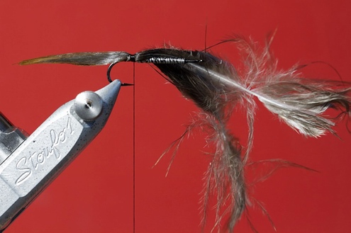 Etwa acht Fasanenfibern als Schwanz einbinden...