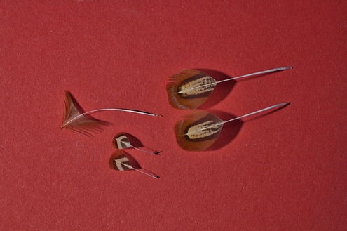 gebräuchlichsten, natürlichen Fliegenbindematerialien. Mit ihnen