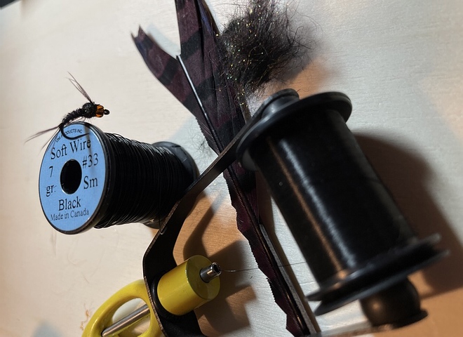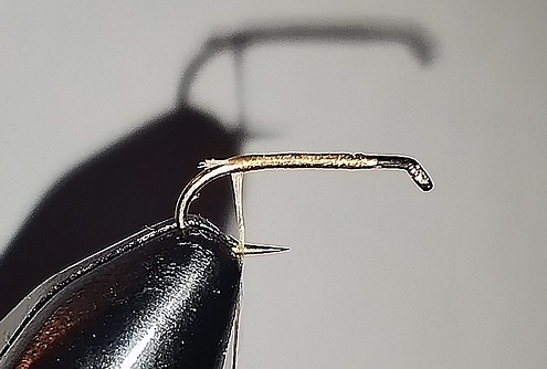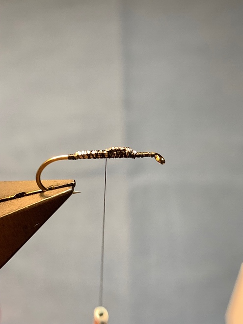 bei zu behalten. Der Körper bestand aus Dubbing, die Rippung war Goldtinsel,