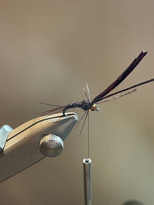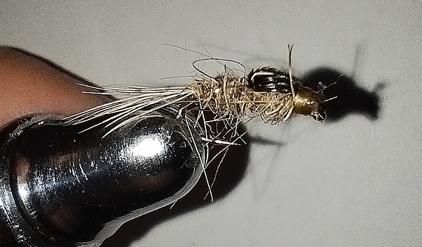 Fertig ist die "Brown Stone Fly". Die kleine Flügelscheide hab ich nicht lackiert,