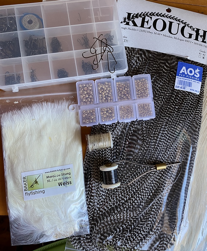 In meiner Dose habe ich sie in verschiedenen Größen und Beschwerungen für die verschiedensten Spots dabei. Für euch habe ich sie jetzt in meiner gängigsten Größe fürs Frühjahr gebunden. Materialliste: