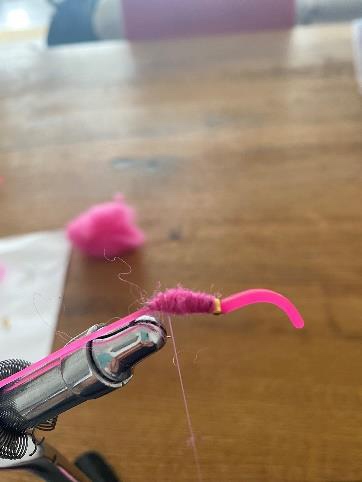 (4) Etwas vom groben Hasen Dubbing anbringen.