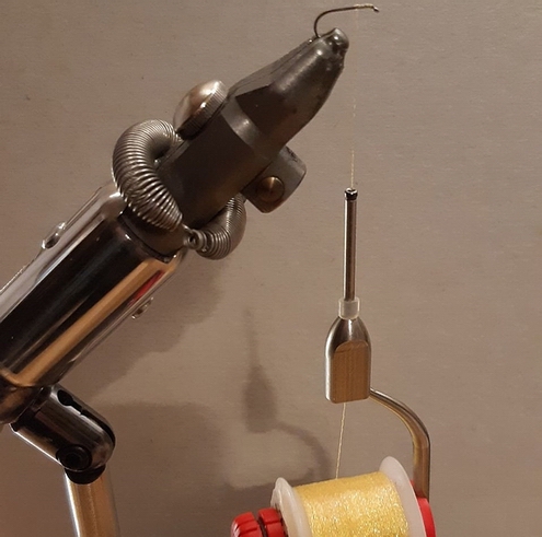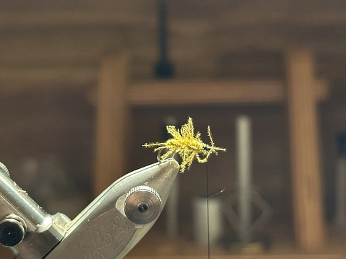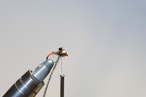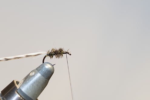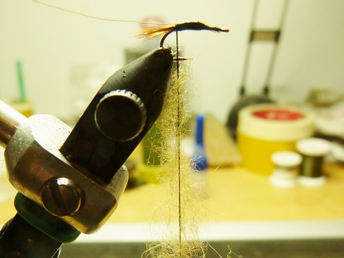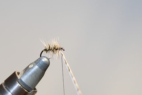 Dubbing auf den Bindefaden bringen.