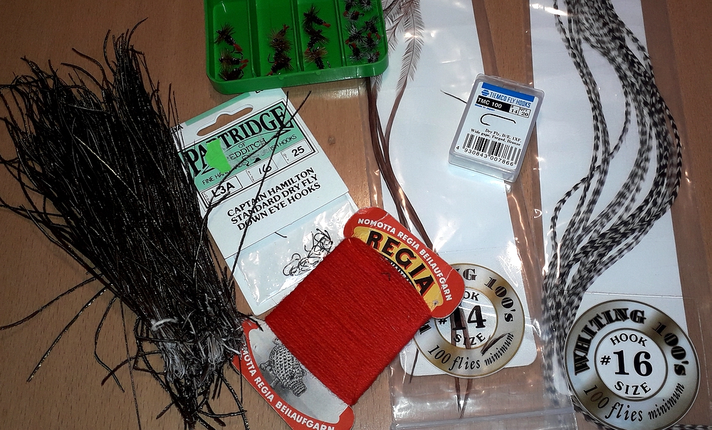 Das rote Schwänzchen und der Körper sind bei beiden Mustern gleich. Besonders im Herbst und in der kurzen Winterphase, bevor die Schonzeit einsetzt, sind die Muster besonders erfolgreich auf Äschen. Beide sind gute und wirksame Nachbildungen all jener kleinen Landinsekten, die vom Frühjahr bis Herbst ins Wasser fallen. Viele sehen in den Mustern auch Eintags- und Köcherfliegen in einer bestimmten Schlupfphase. Weil wir die Fische nicht fragen können was sie in diesen Mustern sehen, werden wir nie erfahren warum diese so fängig sind. Materialien für die