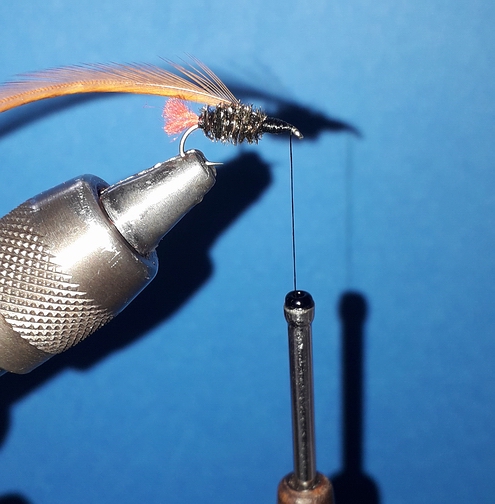 | 5. Peackock Quill* hinten einbinden und Faden