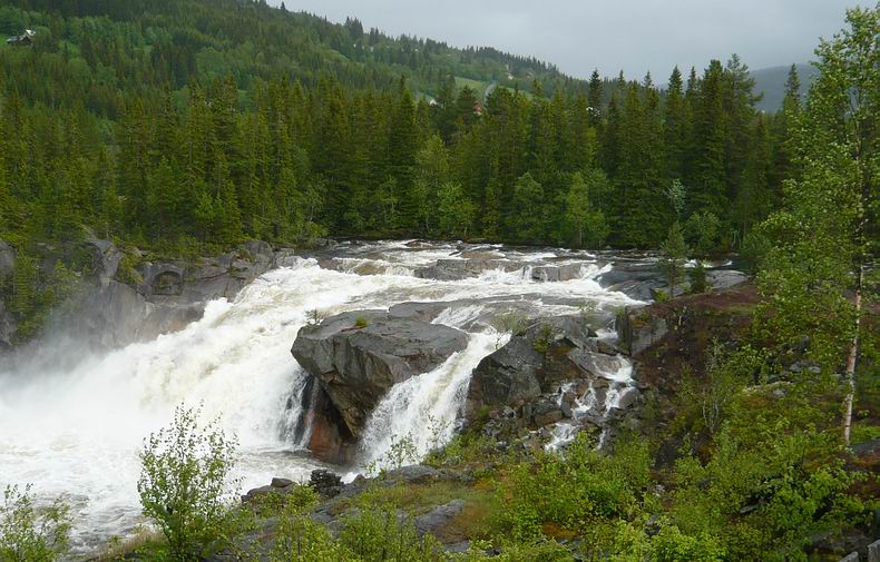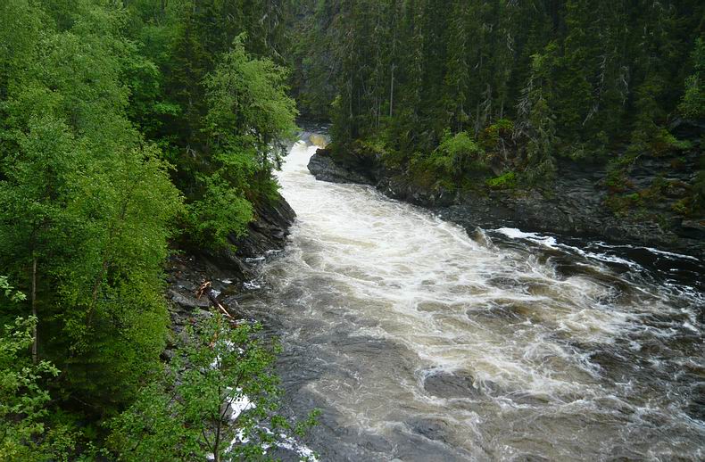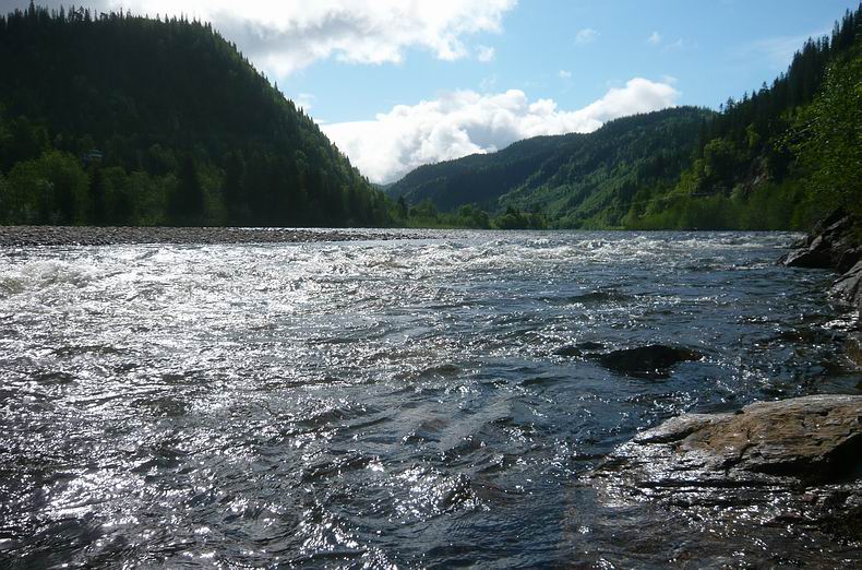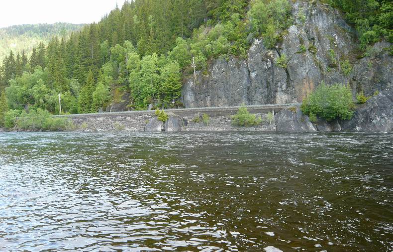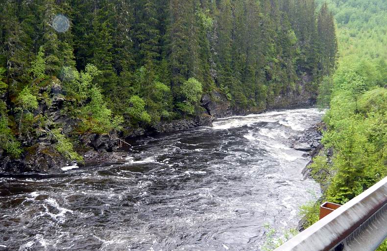 Irgendwie kam, da wir jetzt alleine im Haus waren, eine düstere Stimmung auf. Um dem entgegenzuwirken, unternahmen wir einen Ausflug und sahen uns den Verlauf der Gaula stromaufwärts etwas näher an. |