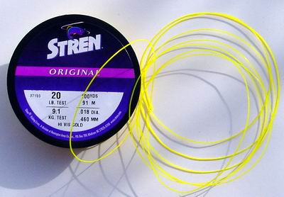 MARTIN RAU's "Shakespeare Glider Neutral #8 & Stren Hi-Vis Gold" Schusskopfsystem Im Frühjahr 2003 hatten wir an dänischen Stränden die Gelegenheit, obige Kombination ausgiebig zu probieren. Es handelte sich um einen aus einer DT-Schnur zugeschnittenen #8er dunkelgrünen Schußkopf, 8 Meter lang und der goldgelben 40er STREN-Monofilschnur als Schußleine (100 yds=91m / 20lb=9,1kg). Preis der Kombination: 39,-- EUR. Eines gleich vorweg: optimal einsetzen lässt sich die STREN nur mit Hilfe eines Schußkorbes. Da ein solcher auch so erhebliche Vorteile bietet, sollte dessen genereller Einsatz jedoch kein Problem darstellen. Hat man sich einmal „eingeschossen“ mit dieser Kombi, lässt es sich weiter werfen und effektiver fischen als mit nahezu jeder anderen Schußkopf-Runnngleine- Kombination. |